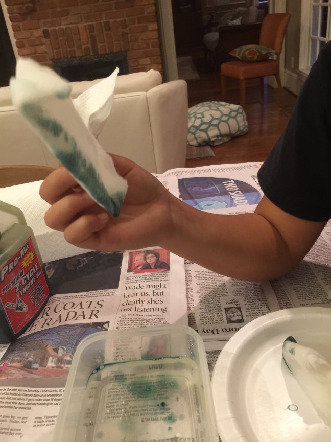 I found out that the paper towel will pick-up oil well if you break through the surface tension of the water. It absorbed oil on the surface quickly. The paper towels works well dry, but once wet, does not work at all. Oil under the surface could not be picked up by paper towel.
